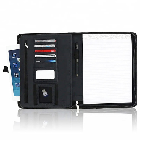 Populaire Multifunctionele Lederen Bestand Portfolio Custom A4 Bestand Houder Rits Tas Met Power Bank Led Licht