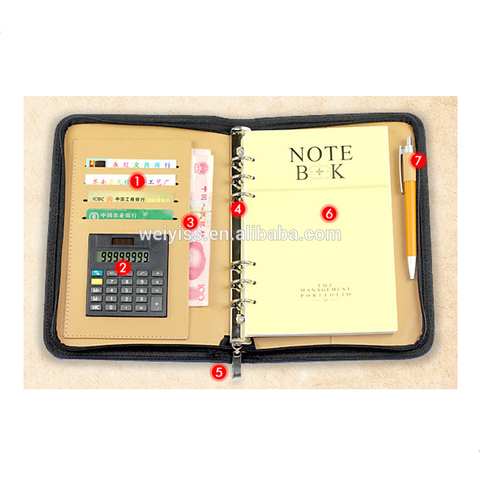 Caja con cremallera A5 Planificador Cubierta de cuero Carpeta de anillas de cuero Planificador de cuero A5 con anillas